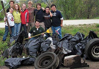 Many people ask why does the trail cleanup need to be a "rain or shine" event? The facts are that the towns, townships and counties that the trails run through schedule their highway work crews and equipment to pick up the amazing amount of trash we pick up. The Monday after the cleanup they use their dump trucks and crews usually assigned to road maintenance and landscaping to picking up the trail trash.