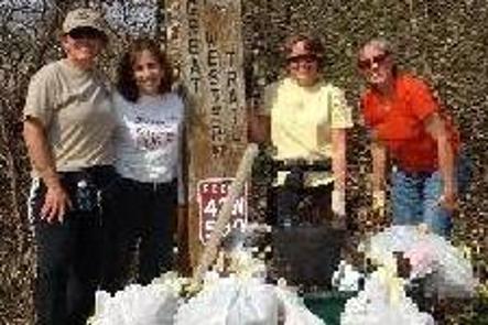 NOTE: All groups from any political viewpoint or religion are always welcome to participate in the annual trails cleanup. Please mark your calendars now for the last Saturday in April for the probable date of the annual cleanup. If you have a group that wants to "officially clean" a section of the trails let us know so we may help you get started.